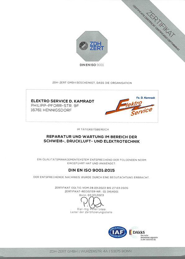 Durch das Zertifizierungsaudit der zertifizierenden Stelle ZDH ZERT wird sichergestellt, dass unser Qualitätsmanagementsystem den Forderungen der Norm entspricht. Durch regelmäßige Überwachungs- und Wiederholungsaudits wird die Wirksamkeit aufrechterhalten und nachgewiesen.